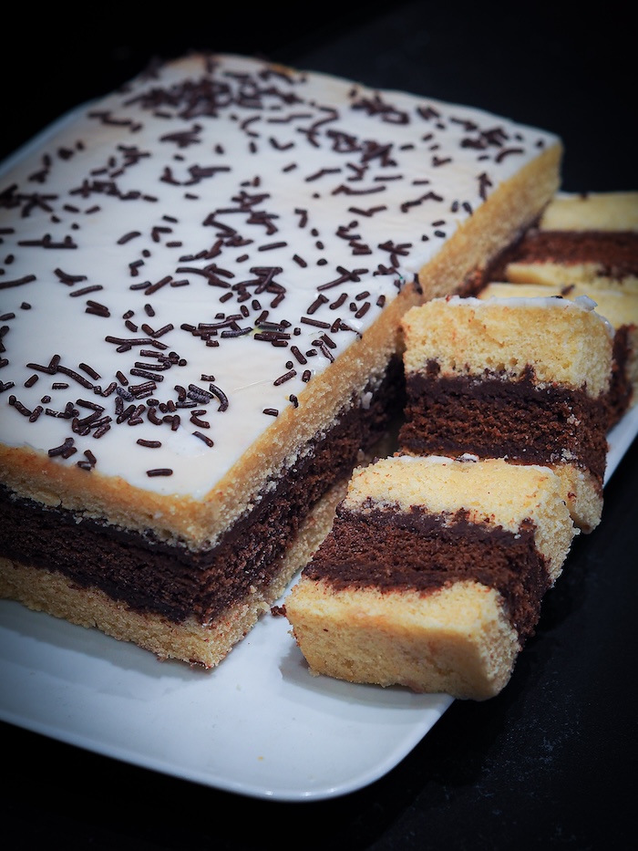 Mais cette fois, j’ai voulu le perfectionner un peu, le réinventer tout en douceur. J’ai retravaillé la base du gâteau pour obtenir une pâte à cake plus moelleuse, plus fondante, qui garde tout son moelleux même après plusieurs heures au frais. Résultat : un Napolitain moelleux avec des couches bien équilibrées, une ganache chocolatée qui fond en bouche et ce petit goût de vanille qui fait chavirer les cœurs. Même les adultes n’ont pas boudé leur plaisir.